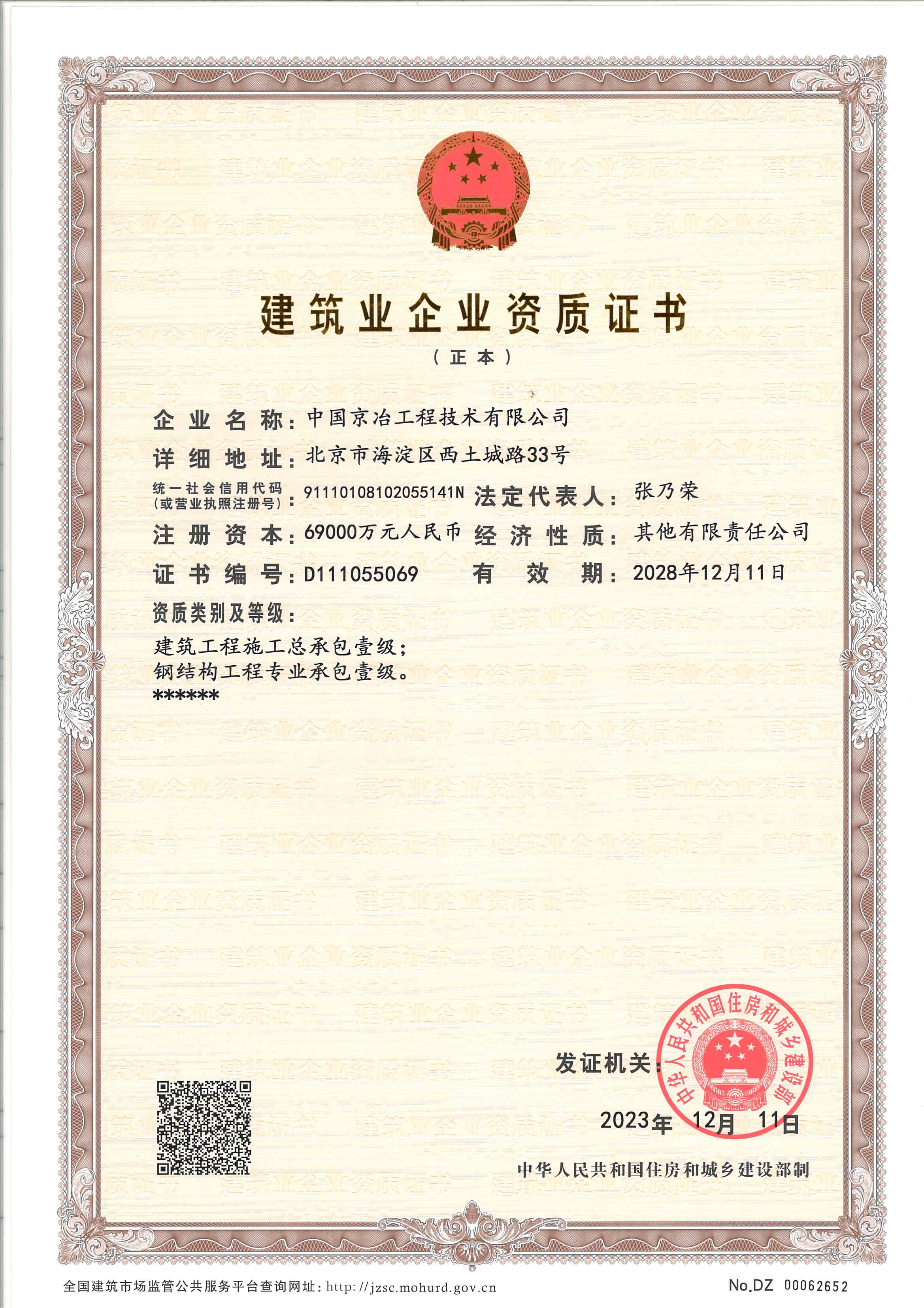 建筑工程施工總承包壹級資質