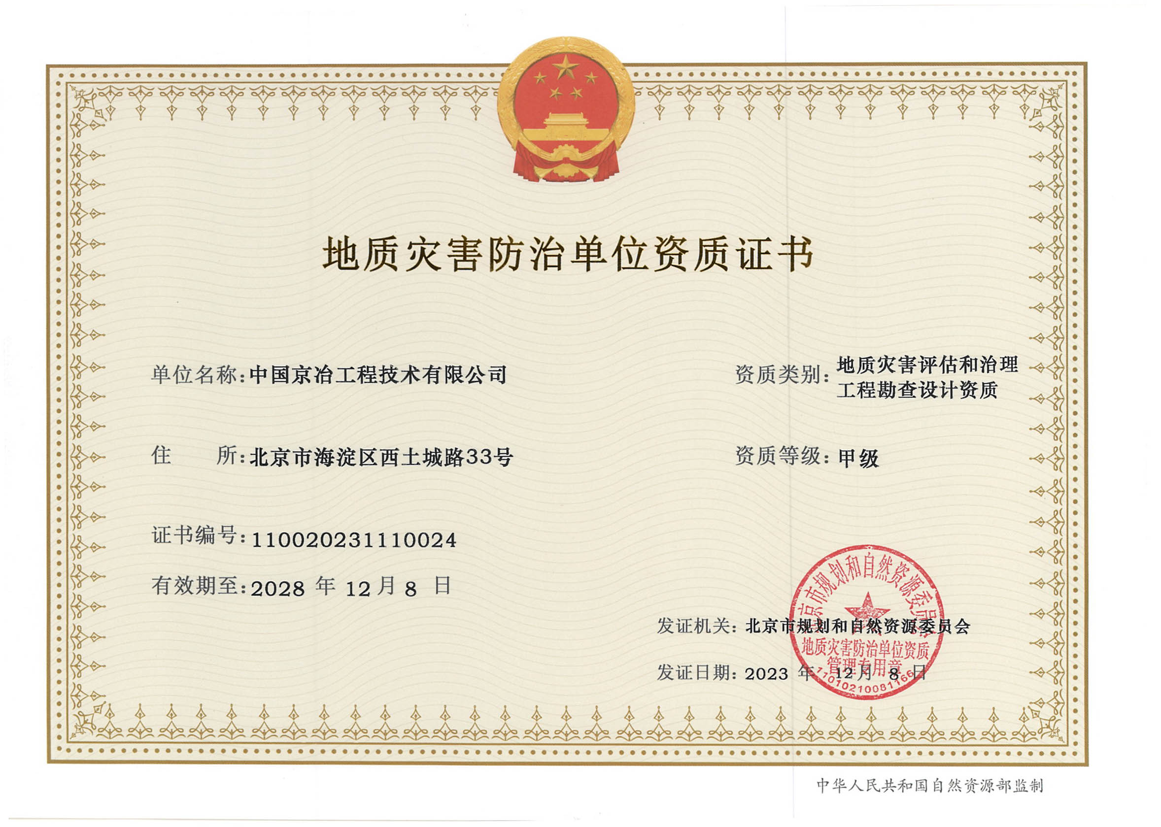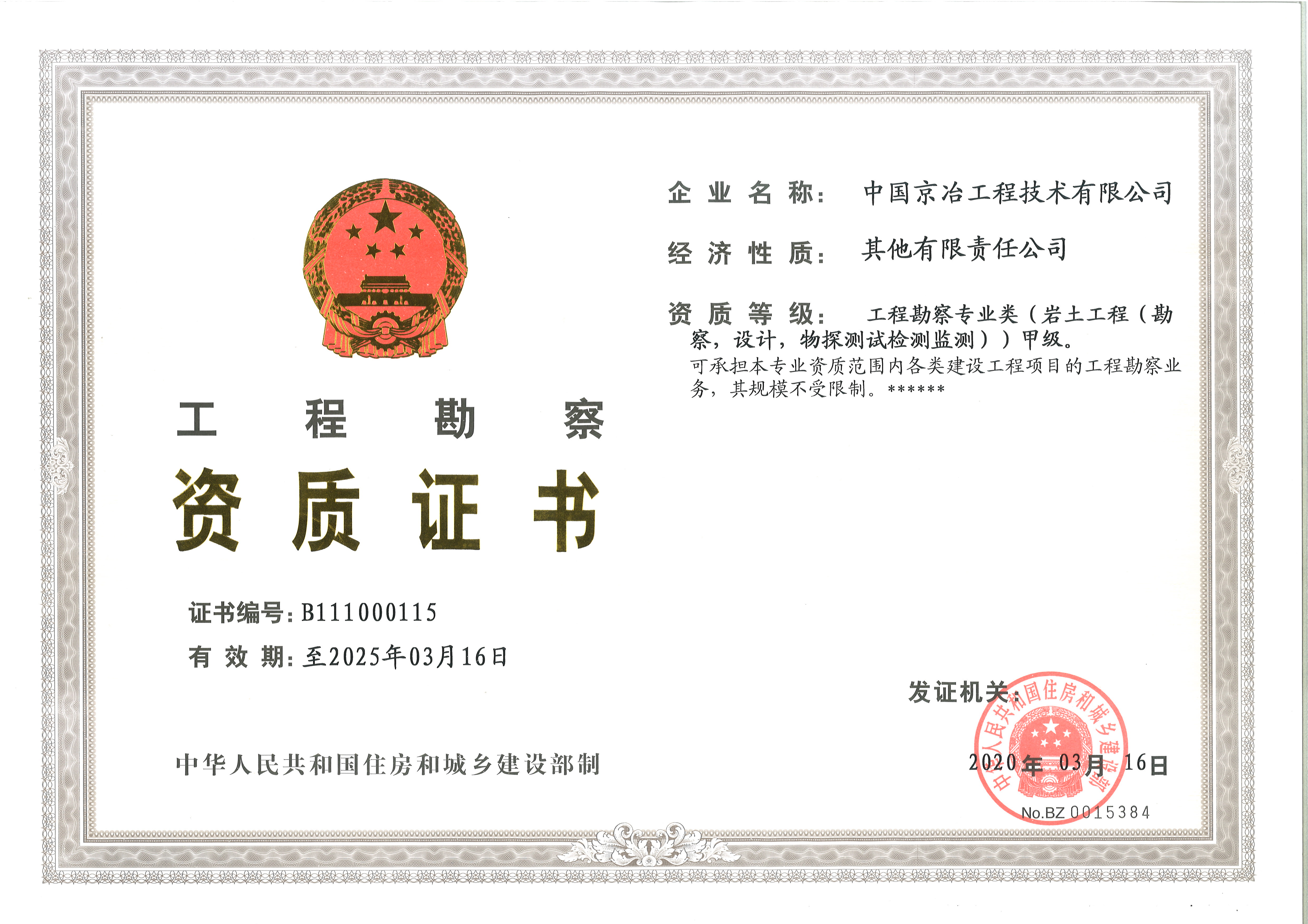 工程勘察甲級資質證書